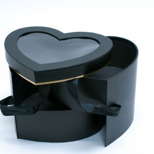 W9848 Double Layer Black Heart Shape Flower Box with Window Lid (Two-Layers)