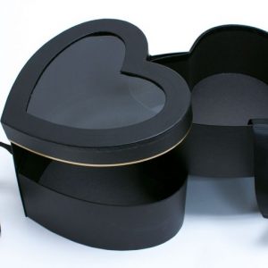 W9723 Royal Black Heart Shape Flower Boxes With Top Window (Set of 3)