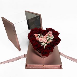 1119ARosegold Rose Gold Acrylic Square Flower Box Tilted Heart Center And Drawer