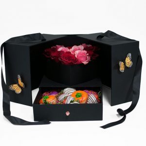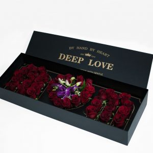 Black Square Flower Box with Heart Shape Container and Drawer Enclosed Comes With Liners And Foams